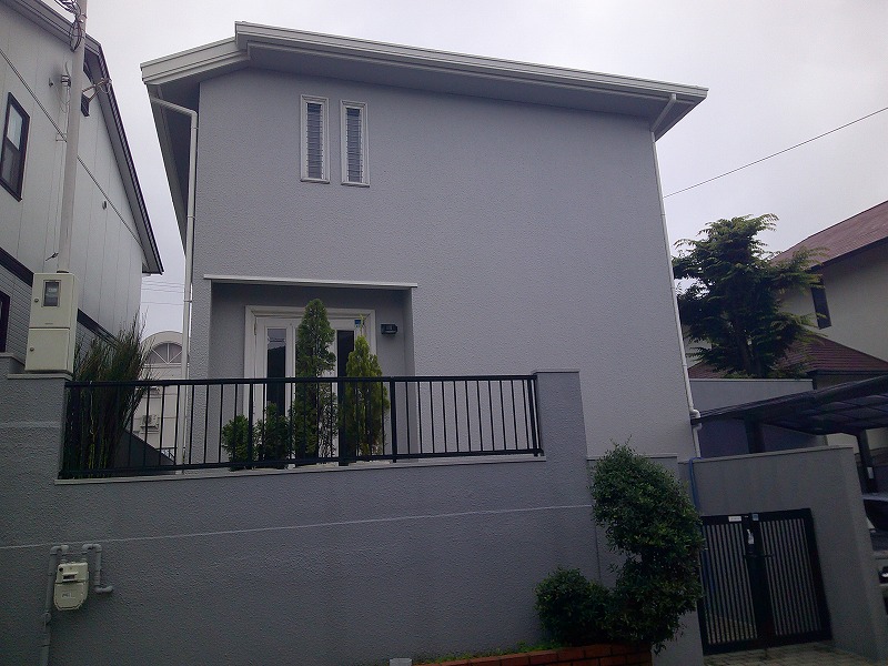 外壁、屋根、外塀塗装完了 外塀汚れても目立ちにくいグレー色を提案させていただきました。