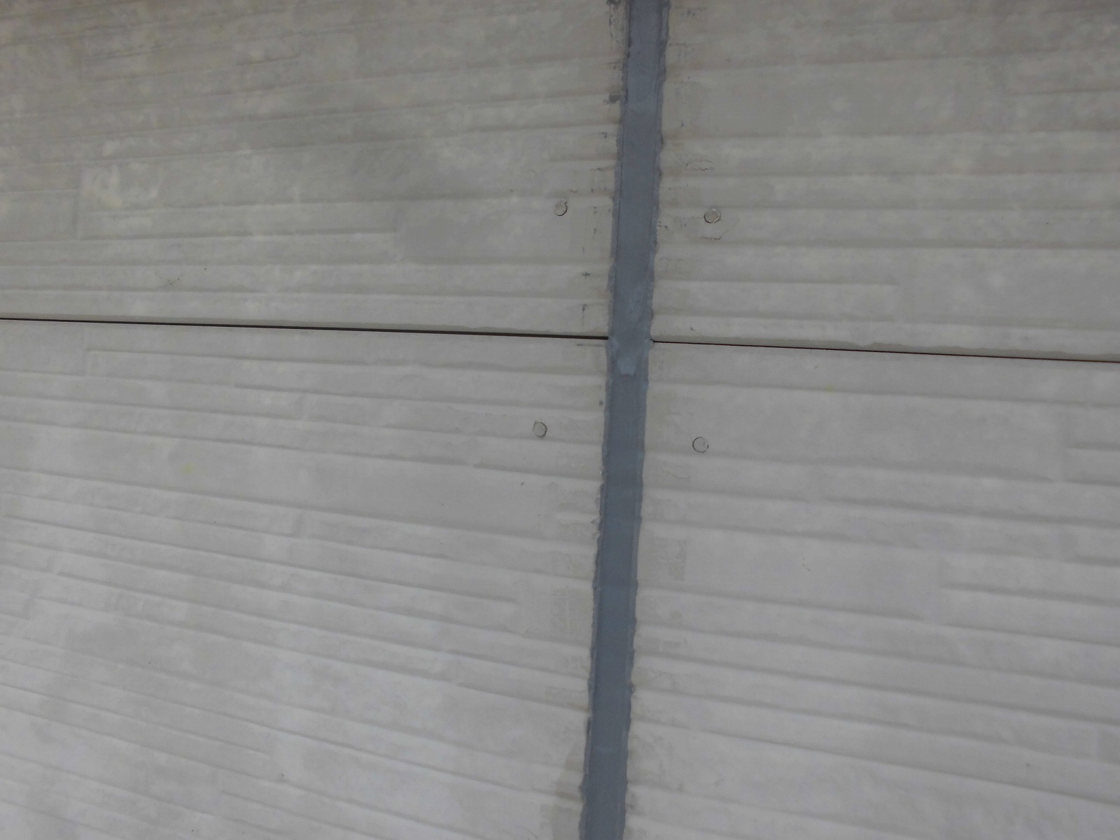 現状のサイディングボードの打継目地が変色・硬化してしまっています、水が侵入しないようコーキングの打ち直しが必要なんですが