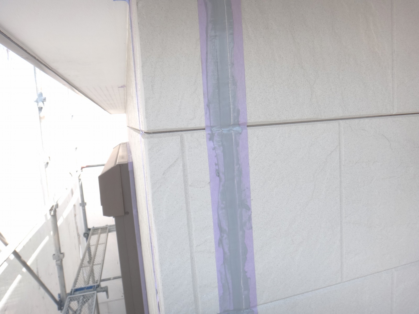 コーキングを撤去したら両側にマスキングテープを張ってからプライマーを塗布します。 コーキングをガンで注入したらへらでならします。 その後はみ出したコーキングが乾くまでにマスキングテープをはがします。