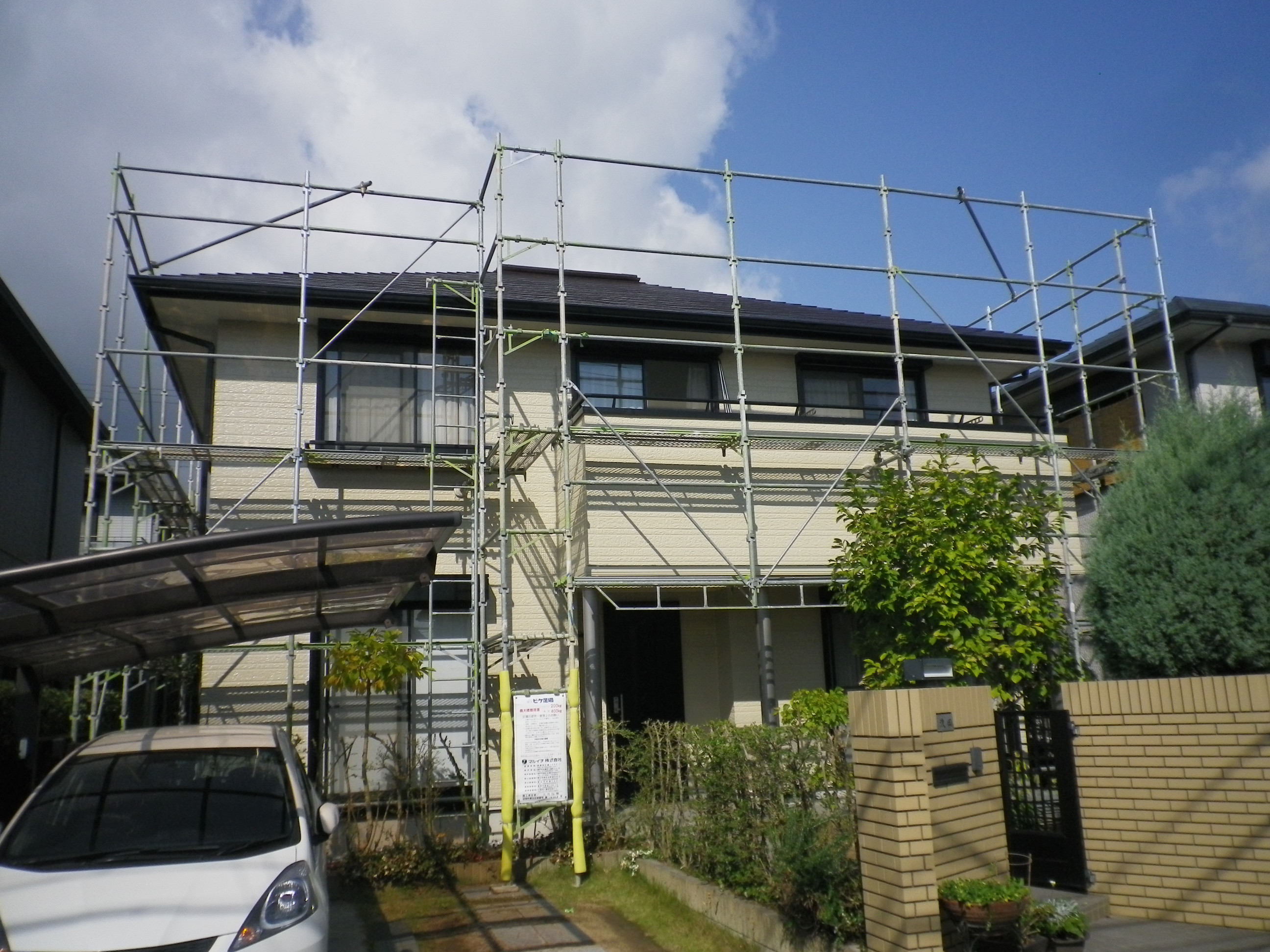 ひととおり塗装工事が完了しましたので、 メッシュシートをばらしてみます。 施主様に確認していただき足場解体の日を 待ちます。