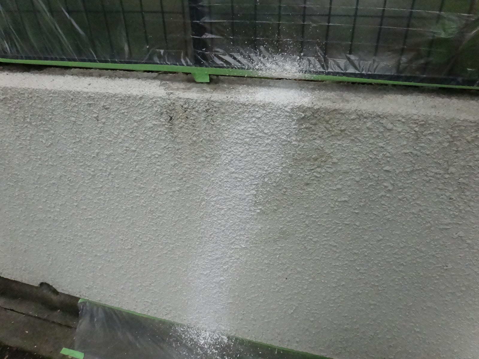 既存模様にそろえるため、吹付玉吹きをしてから塗装工程に移ります。